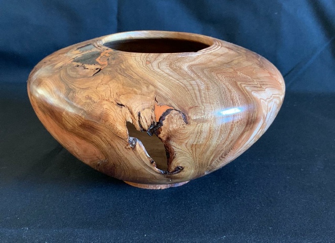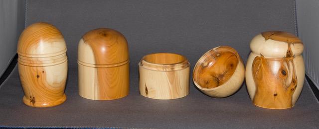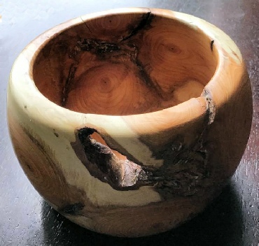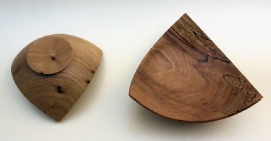 The camphor box (not threaded) has a lid from the core of the blank. The eucalyptus bowl was turned from a square blank that showed no outward signs of the cavity that was in the middle.
