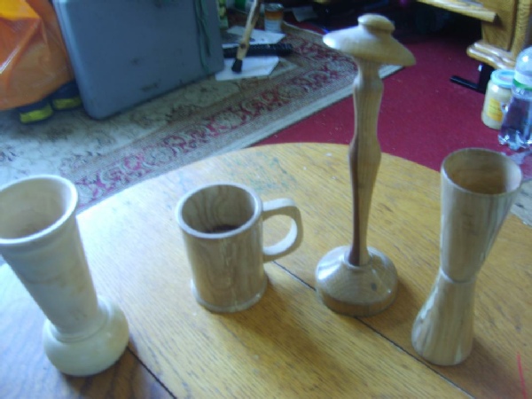 Alan Arnold shows us what he made from the large lump of Beech which he got from Shaun at his demonstration. It shows that it is not a good idea to chuck a piece of wood away just because it does not look to good.