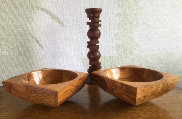 Brian Partridge tries his hand at a three cornered dish after seeing Andy Coates do it. You start with a square box mounted between opposite corners and move on from there. Turn gently and as fast as comfortable with very sharp tools.