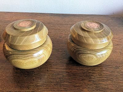Finished these two boxes today, just over 5 inches diameter and 6 inches tall