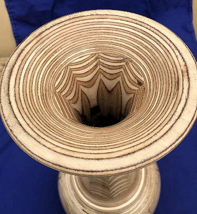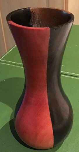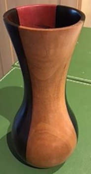 Colin Plumb has been at it again with a vase made from Olive wood, Indonesian Ebony, Buminga and Blackwood