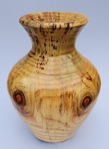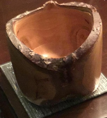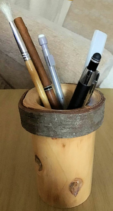 Colin Plumb has made an interesting pen and pencil holder with a natural edge top.