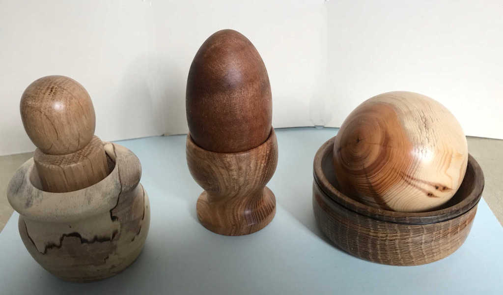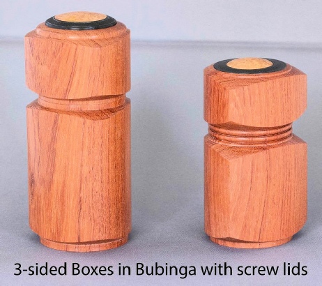 Brian Partridge made these two small boxes, one experimenting with plywood turned off centre one made using an unusual wood