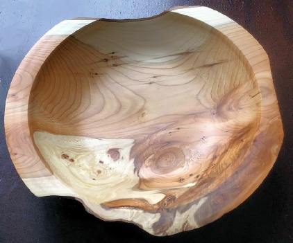 It is nice to see Bowl made in Cherry 230/150mm. This shows some natural features. Some turners are inclined to only get plainer pieces when finding wood. Well done Terry.