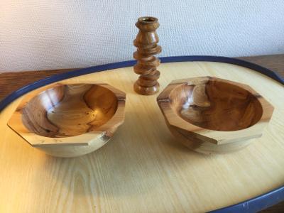 First 2 photos are a bread platter up and under side made from a odd rough piece of yew