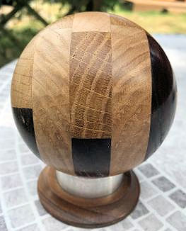 This is my first attempt at doing a Paul Howard ball I just put a lot of odd bits of wood together, squared it off then hoped for the best, I made the stand from a piece of scaffold pole Sitting on a wood base